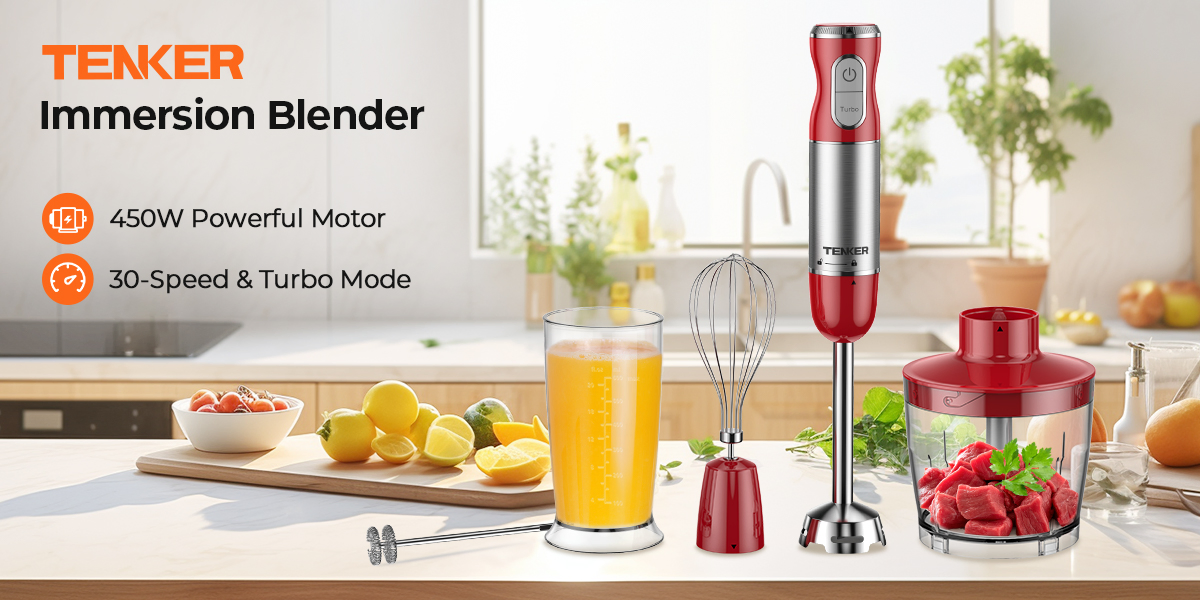 Powerful and Fast – TENKER hand blender electric equipped with an enhanced upgraded 1000 Watt high power copper motor,which makes blending task faster with Low noise. In contrast to common motors, copper motor promises 3X longer service life.