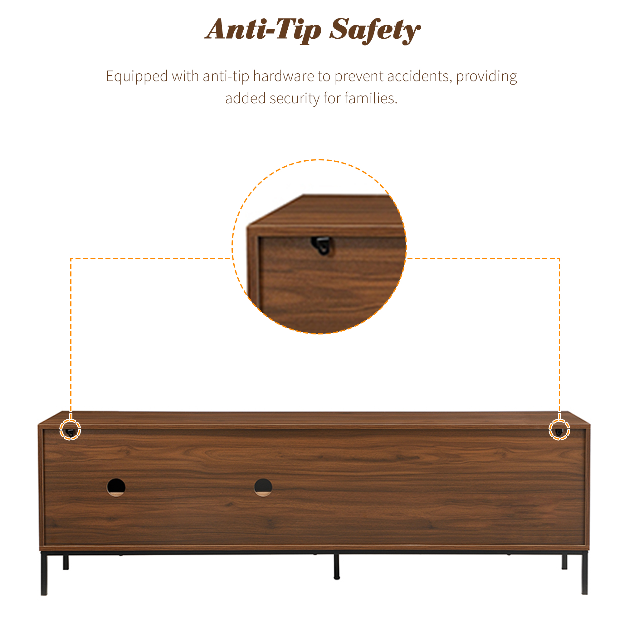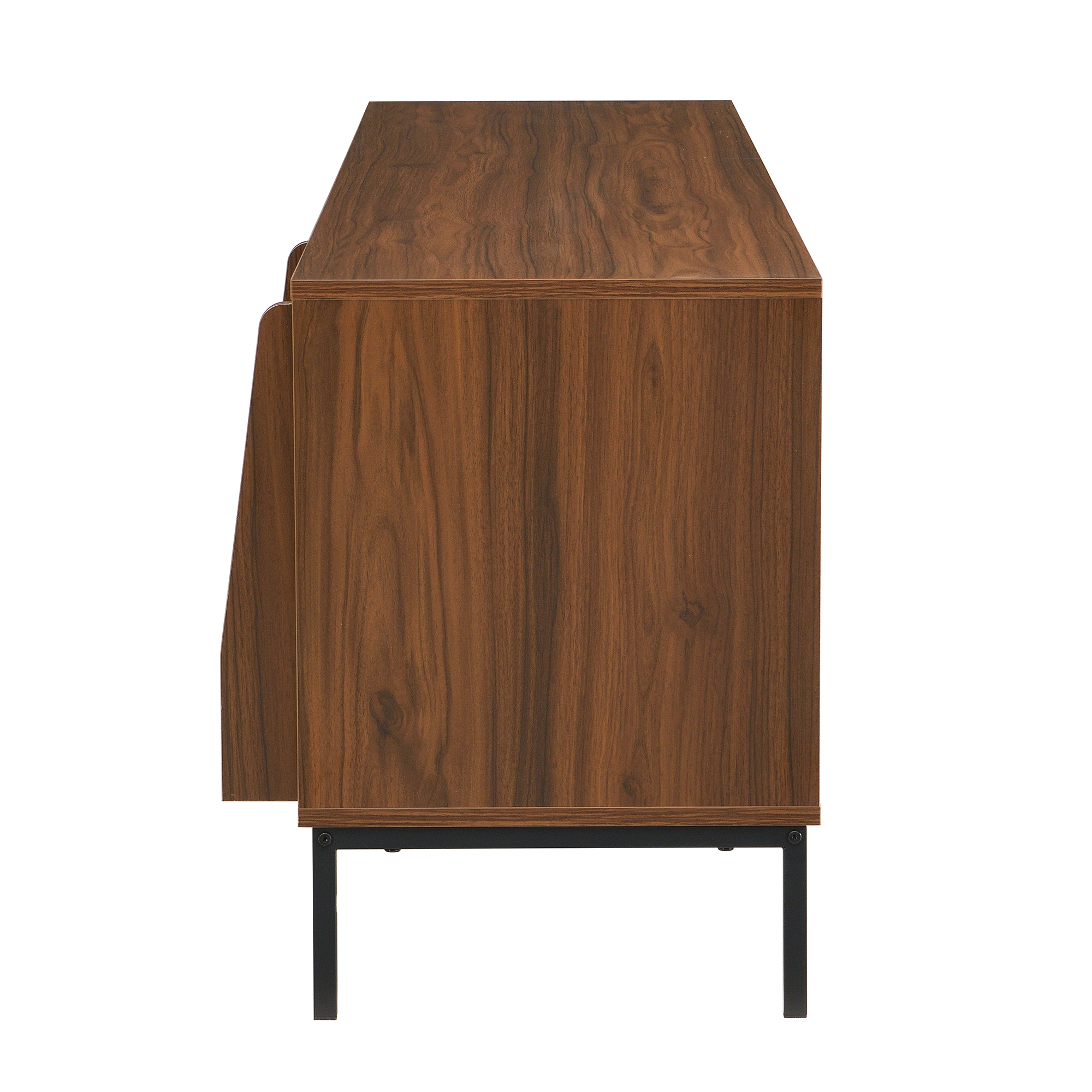 Elevate your living room with this sleek and contemporary TV Cabinet. Designed to combine style, durability, and practicality, this minimalist TV stand features a beautiful walnut wood sticker, complemented by a black metal frame for a sophisticated, modern look. Ideal for organizing your entertainment area, this cabinet provides ample storage while maintaining a clean and tidy aesthetic.